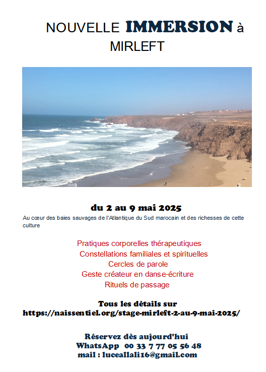 Voir le site : https://naissentiel.org/stage-mirleft-2-au-9-mai-2025/